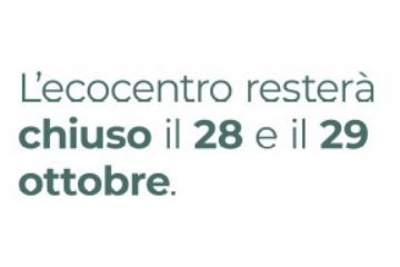 Si avvisa la Cittadinanza che l'ecocentro resterà chiuso nelle giornate di martedì 28/10/2025 e mercoledì 29/10/2025